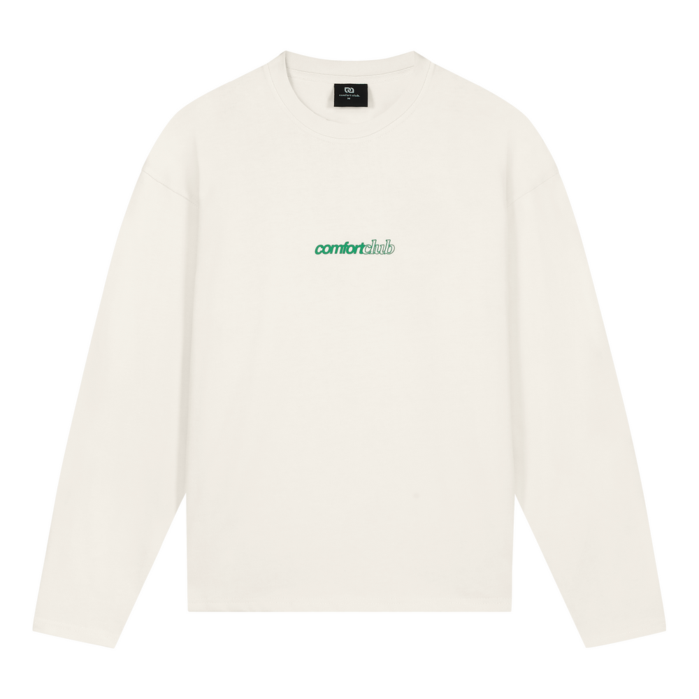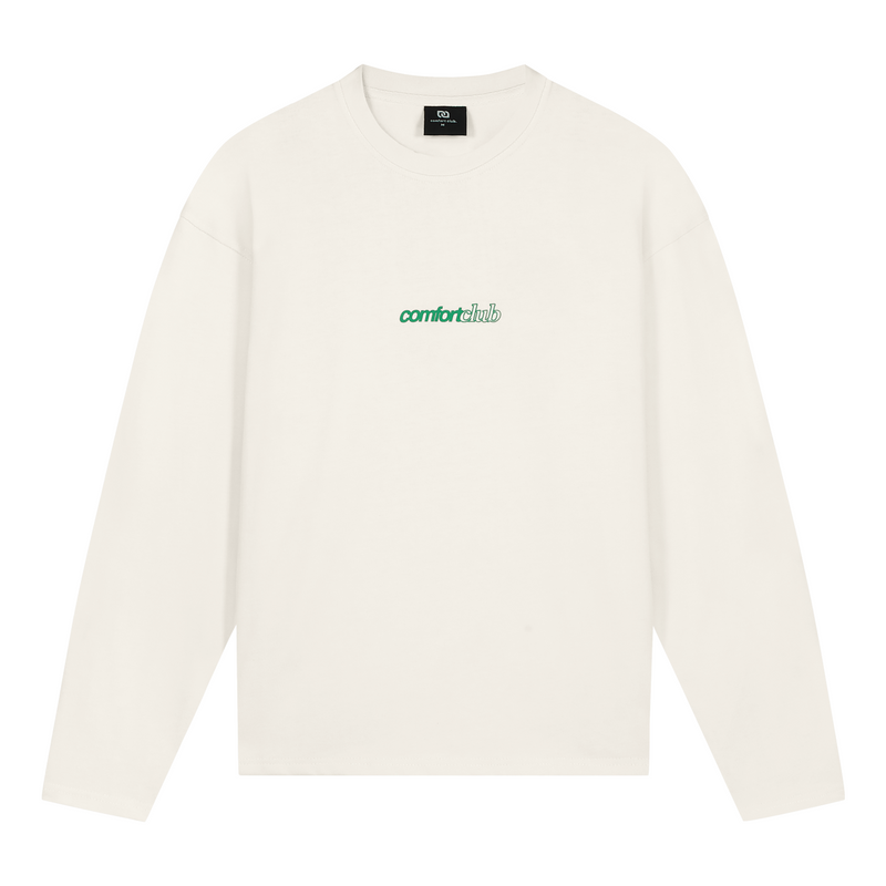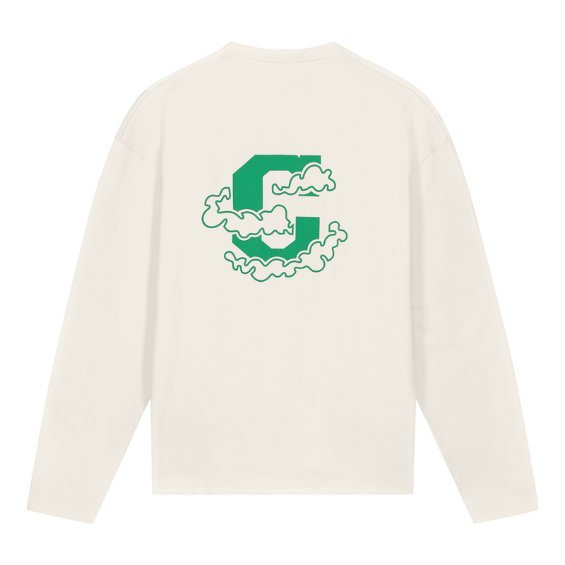 Longsleeve jersey t-shirt in Off White. Slightly oversized fit in a medium weight cotton. Ribbed crewneck collar. Comfort Club Celestial Cloud print graphic to the chest and back.