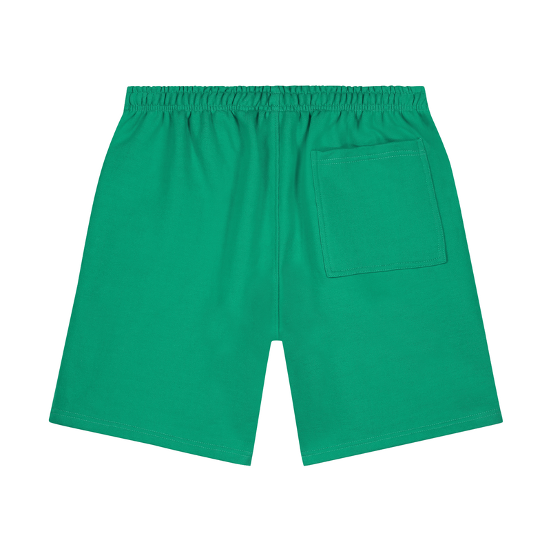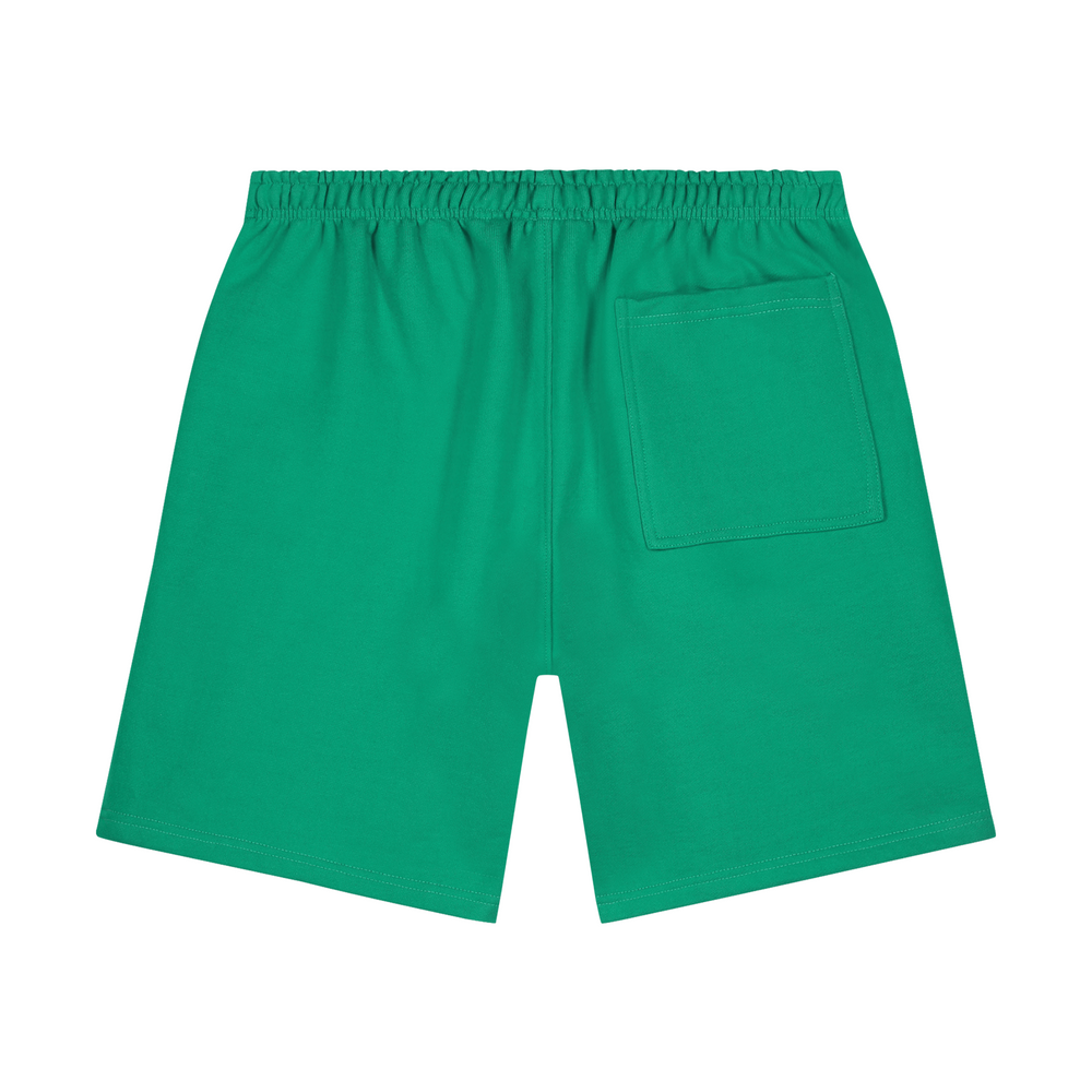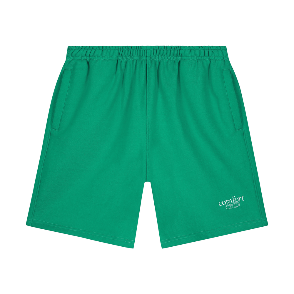 Leaf Green short with a relaxed fit in a heavy weight jersey cotton. Elasticated waistband with a drawstring and zip pockets to the front. Comfort Club Celestial embroidery on the leg.