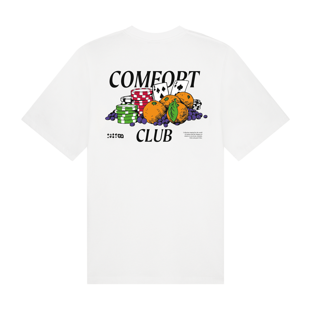 Short sleeve jersey t-shirt in black. Slightly oversized fit in a medium weight cotton. Ribbed crewneck collar. Comfort Club Fruit Fortune Tee print graphic to the chest & back.
