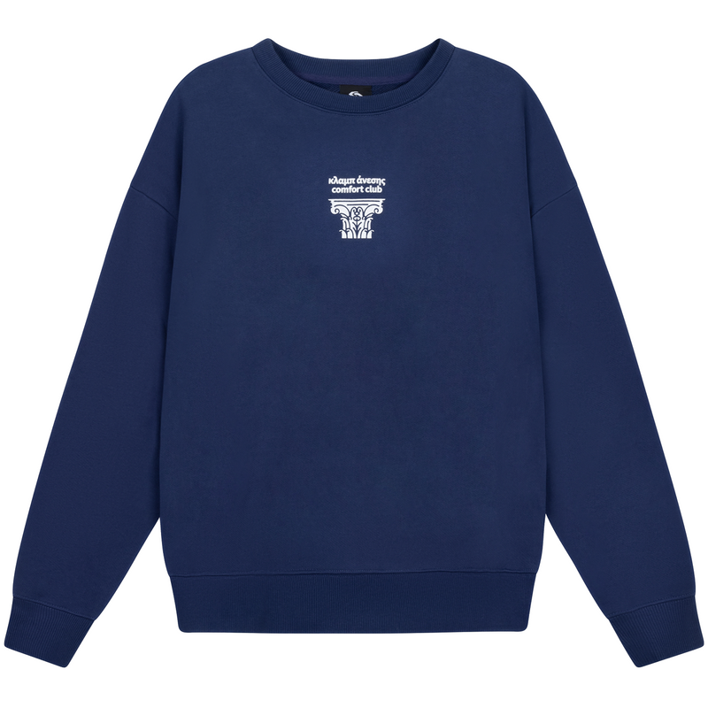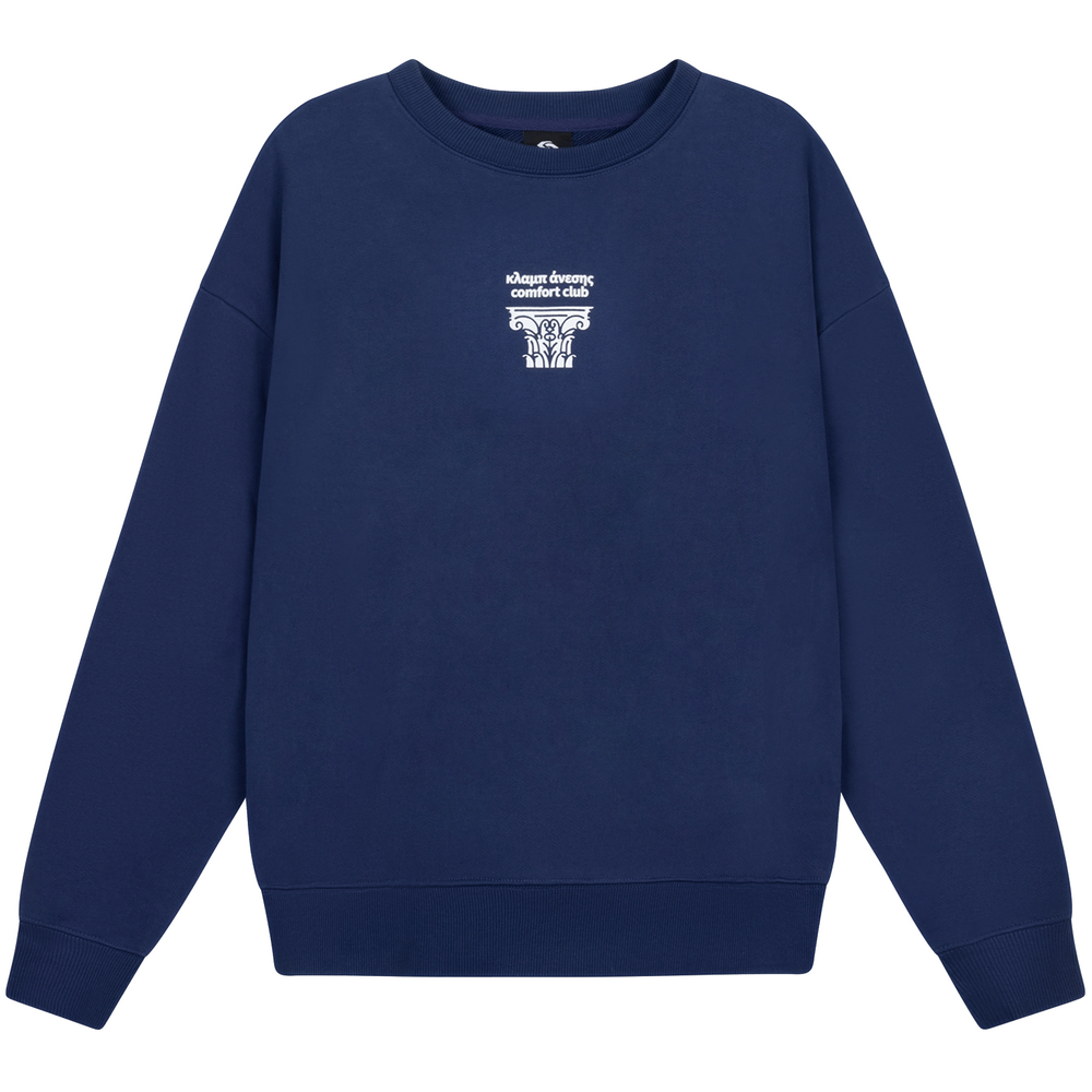 Pillar sweater with a slightly oversized fit in a heavy weight cotton. Ribbed hem & cuffs. Comfort Club pillar print to the chest.